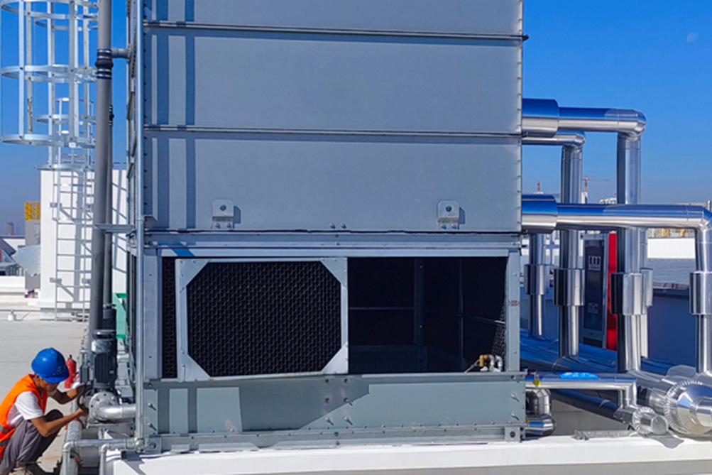 對于暫時不使用的設備,可將冷卻水塔或冰水機冷凝器的進出口閥門關閉,放水閥門打開,將水排空即可。